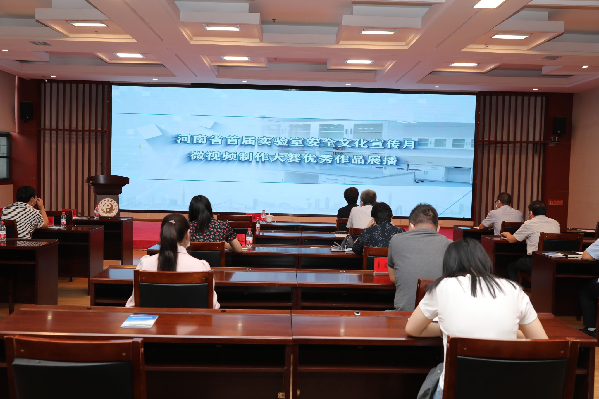 启动会后,全体参会人员集体观摩河南省第二届高校实验室安全文化宣传月开幕式及安全培训。